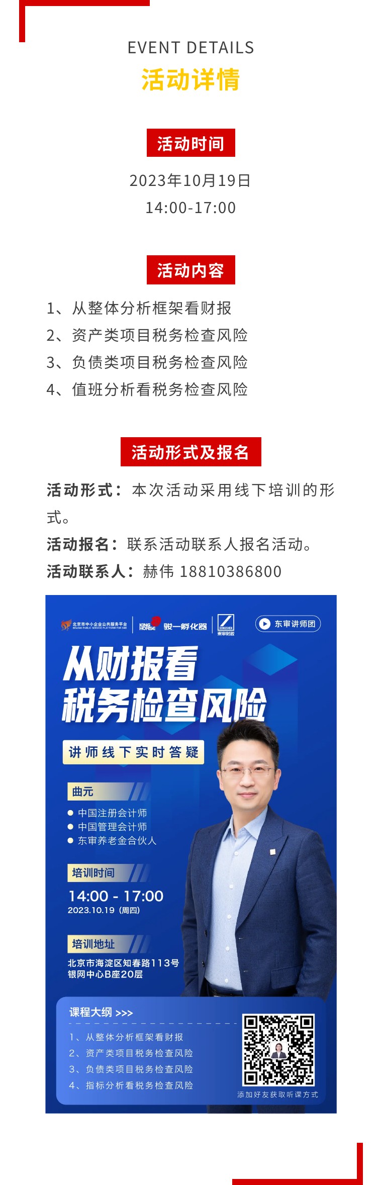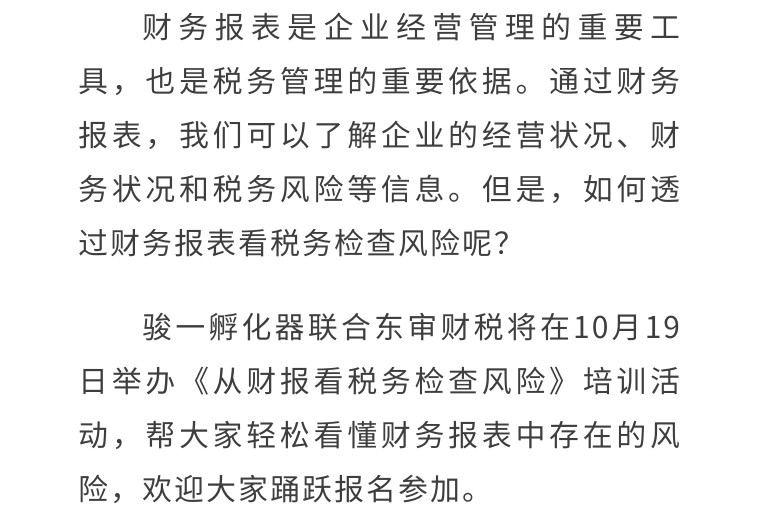 活动通知 || “从财报看税务检查风险”线下培训活动报名啦!