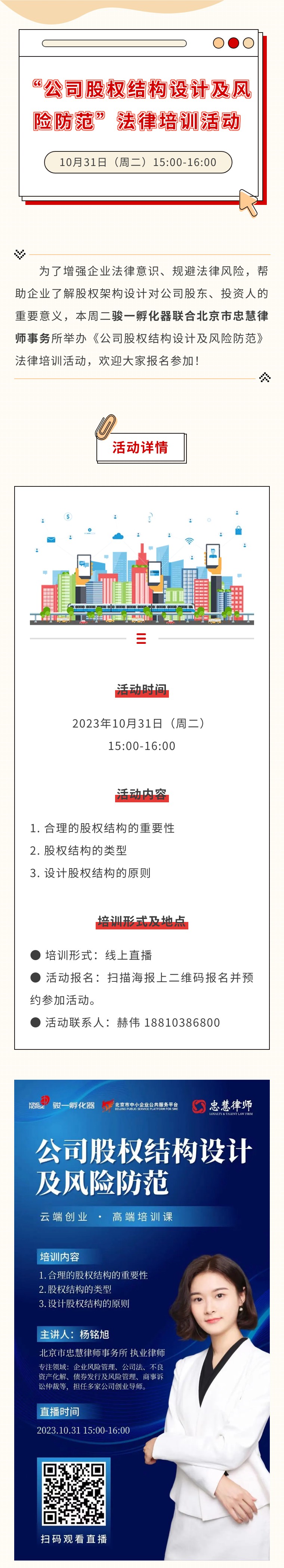 本周直播预告 || 公司股权结构设计及风险防范”法律培训活动